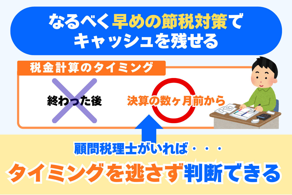 【メリット②】なるべく早めの節税対策でキャッシュを残せる